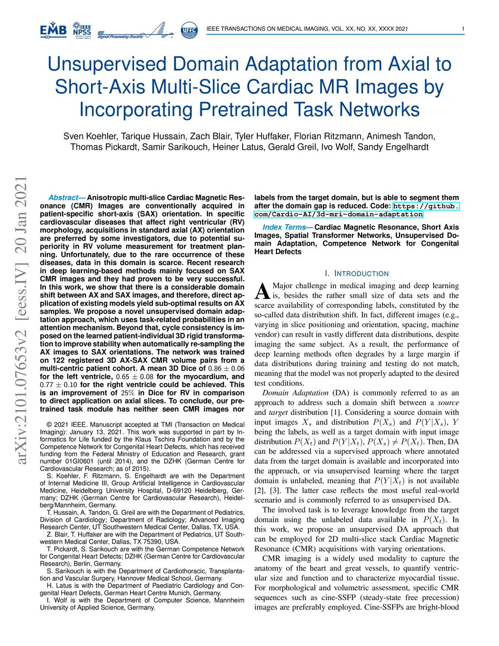 Unsupervised Domain Adaptation from Axial to Short-Axis Multi-Slice