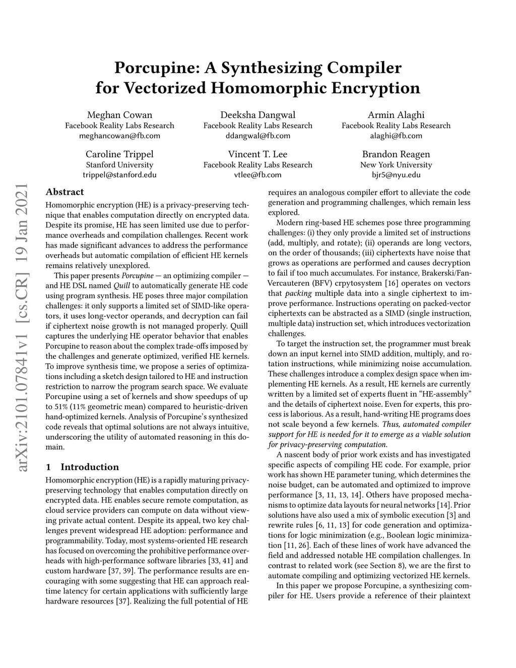 Porcupine: A Synthesizing Compiler for Vectorized Homomorphic Encryption