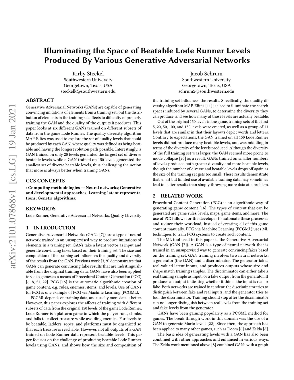 Illuminating the Space of Beatable Lode Runner Levels Produced By