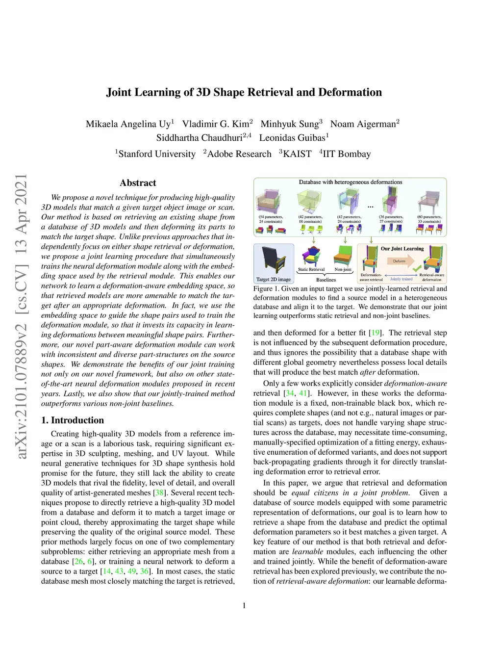We propose a novel technique for producing high-quality 3D models that match a given target object image or scan. Our method is based on retrieving an existing shape from a database of 3D models and then deforming its parts to match the target shape. Unlike previous approaches that independently focus on either shape retrieval or deformation, we propose a joint learning procedure that simultaneously trains the neural deformation module along with the embedding space used by the retrieval module. This enables our network to learn a deformation-aware embedding space, so that retrieved models are more amenable to match the target after an appropriate deformation. In fact, we use the embedding space to guide the shape pairs used to train the deformation module, so that it invests its capacity in learning deformations between meaningful shape pairs. Furthermore, our novel part-aware deformation module can work with inconsistent and diverse part-structures on the source shapes. We demonstrate the benefits of our joint training not only on our novel framework, but also on other state-of-the-art neural deformation modules proposed in recent years. Lastly, we also show that our jointly-trained method outperforms various non-joint baselines.