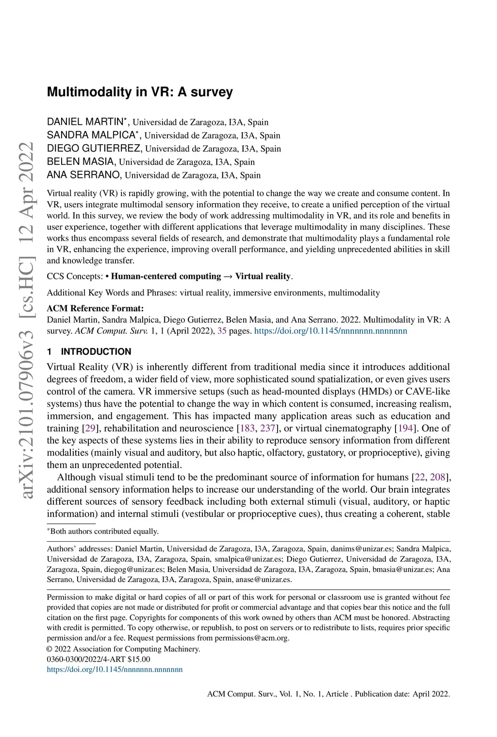 Multimodality in VR: A survey
