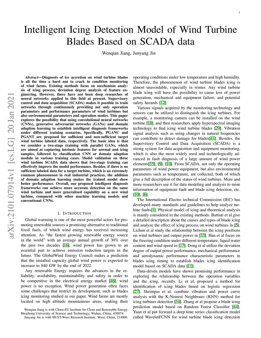 Intelligent Icing Detection Model of Wind Turbine Blades Based on SCADA data