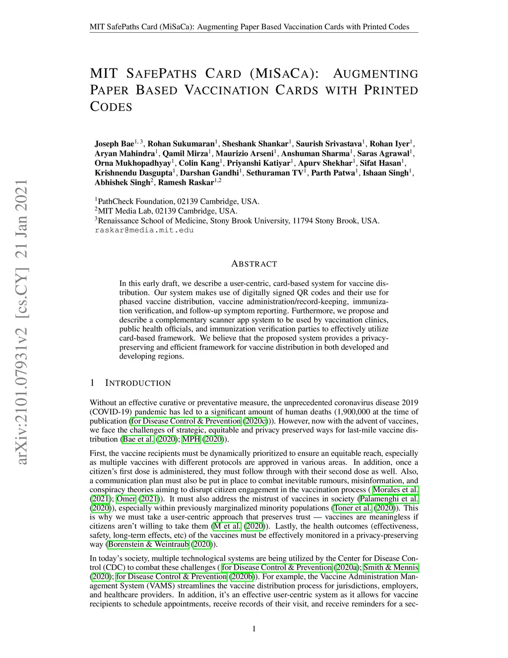 MIT SafePaths Card (MiSaCa): Augmenting Paper Based Vaccination Cards