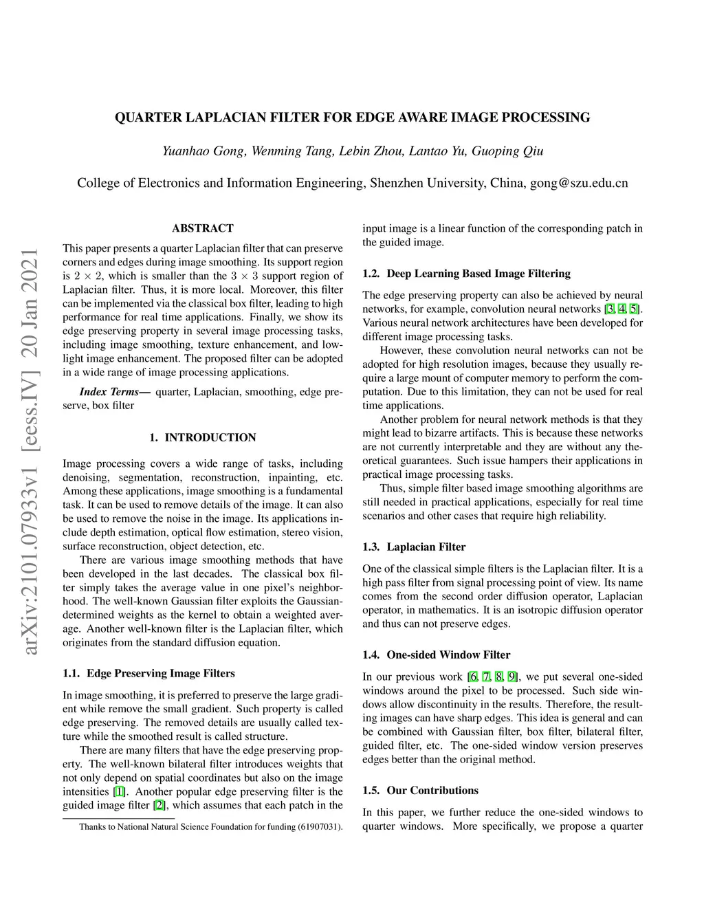 Quarter Laplacian Filter for Edge Aware Image Processing