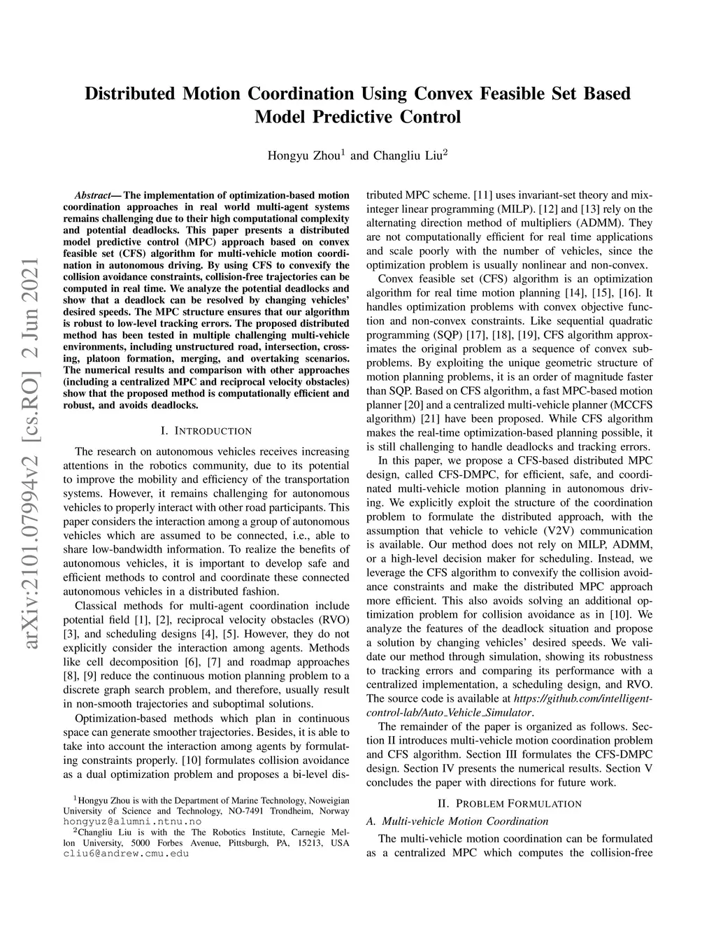 Distributed Motion Coordination Using Convex Feasible Set Based Model