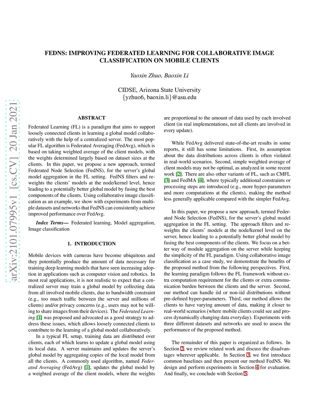 FedNS: Improving Federated Learning for collaborative image