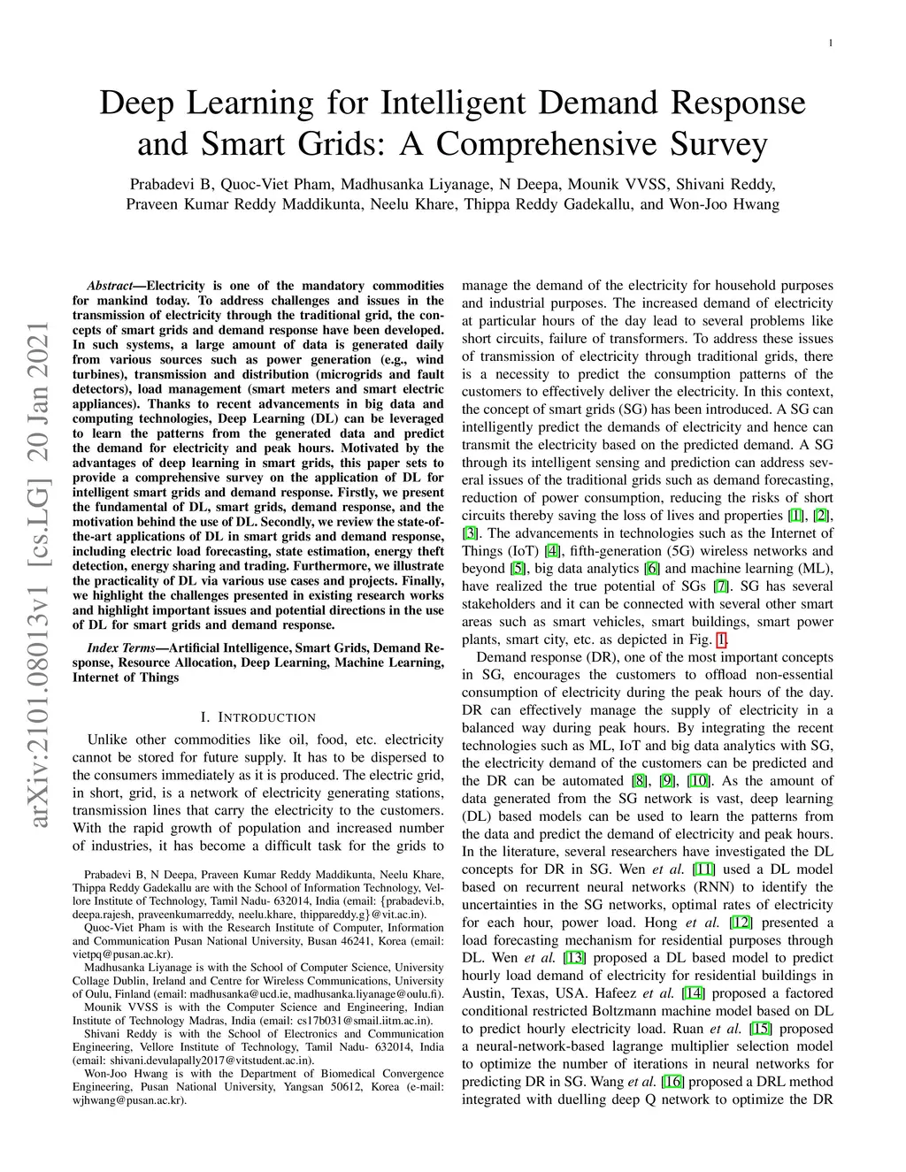 Deep Learning for Intelligent Demand Response and Smart Grids: A
