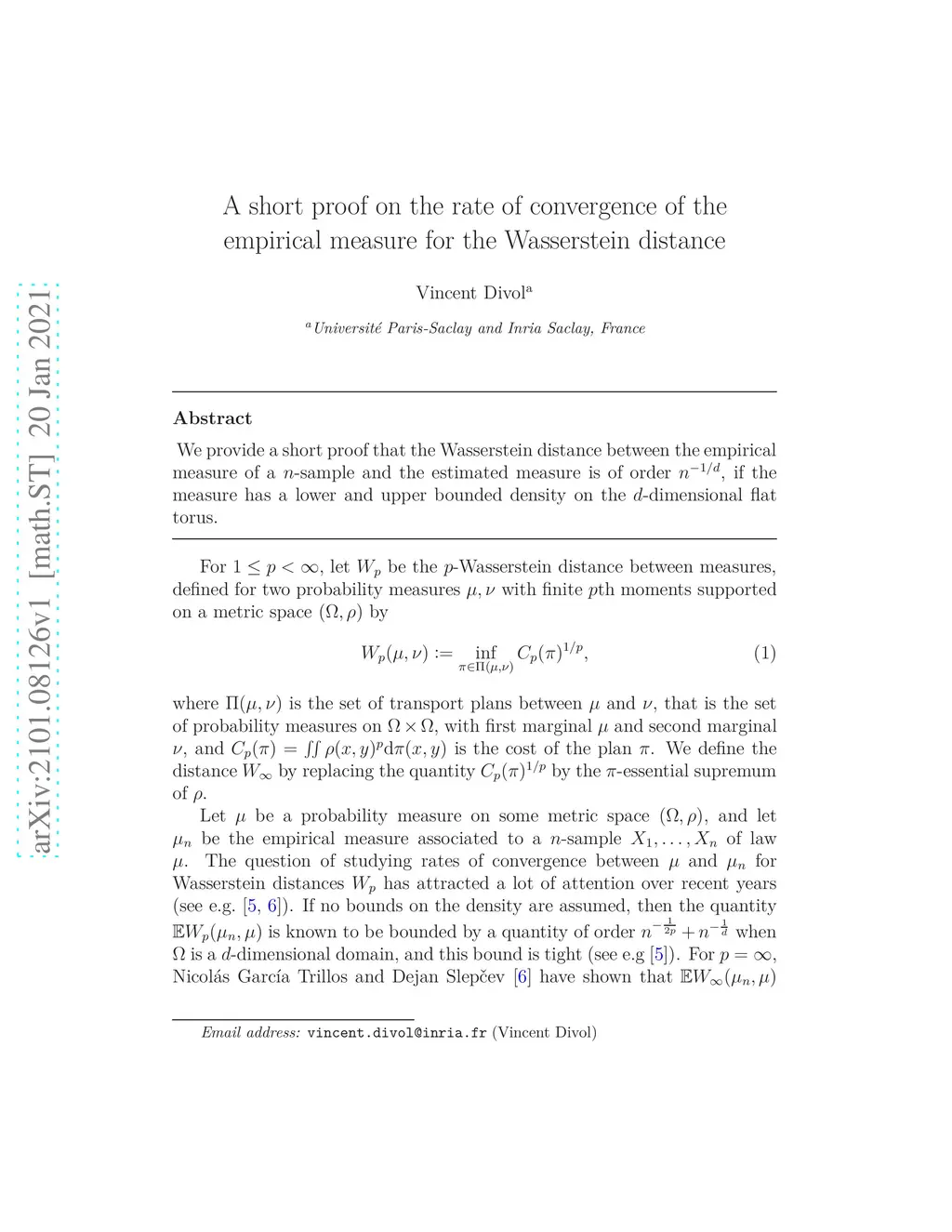 We provide a short proof that the Wasserstein distance between the empirical measure of a n-sample and the estimated measure is of order n^-(1/d), if the measure has a lower and upper bounded density on the d-dimensional flat torus.