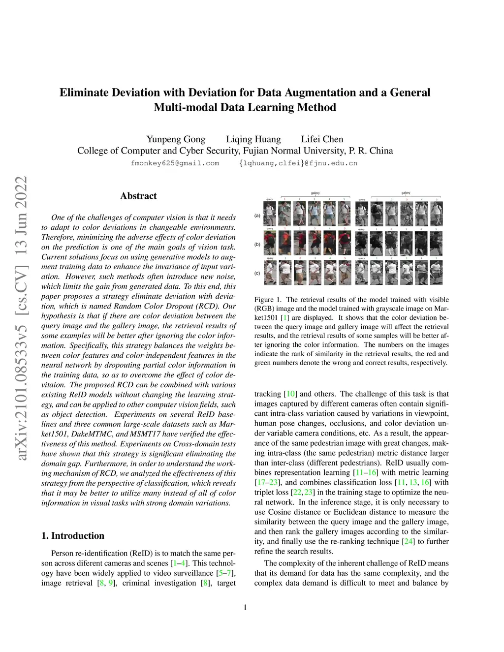 One of the challenges of computer vision is that it needs to adapt to color deviations in changeable environments. Therefore, minimizing the adverse effects of color deviation on the prediction is one of the main goals of vision task. Current solutions focus on using generative models to augment training data to enhance the invariance of input variation. However, such methods often introduce new noise, which limits the gain from generated data. To this end, this paper proposes a strategy eliminate deviation with deviation, which is named Random Color Dropout (RCD). Our hypothesis is that if there are color deviation between the query image and the gallery image, the retrieval results of some examples will be better after ignoring the color information. Specifically, this strategy balances the weights between color features and color-independent features in the neural network by dropouting partial color information in the training data, so as to overcome the effect of color devitaion. The proposed RCD can be combined with various existing ReID models without changing the learning strategy, and can be applied to other computer vision fields, such as object detection. Experiments on several ReID baselines and three common large-scale datasets such as Market1501, DukeMTMC, and MSMT17 have verified the effectiveness of this method. Experiments on Cross-domain tests have shown that this strategy is significant eliminating the domain gap. Furthermore, in order to understand the working mechanism of RCD, we analyzed the effectiveness of this strategy from the perspective of classification, which reveals that it may be better to utilize many instead of all of color information in visual tasks with strong domain variations.