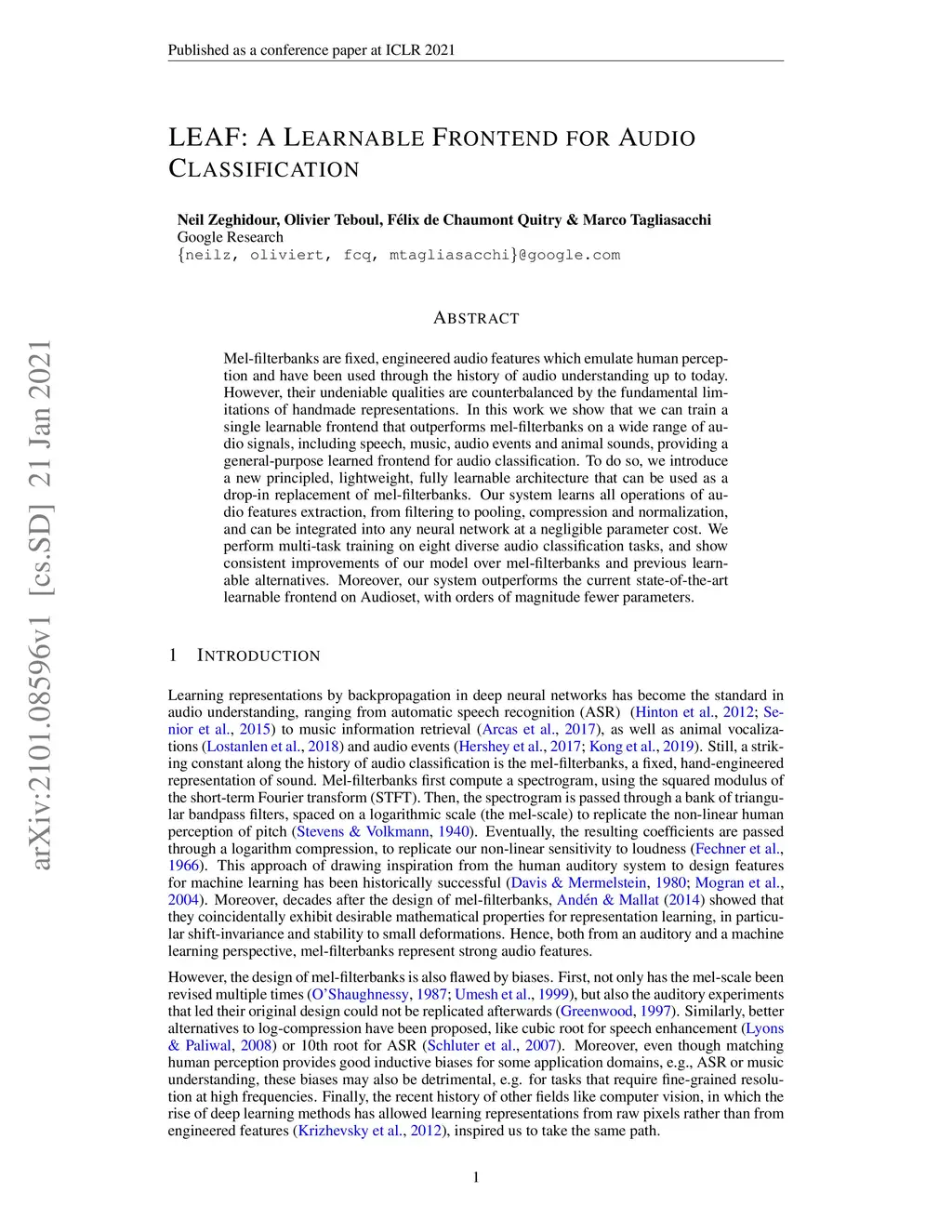Mel-filterbanks are fixed, engineered audio features which emulate human perception and have been used through the history of audio understanding up to today. However, their undeniable qualities are counterbalanced by the fundamental limitations of handmade representations. In this work we show that we can train a single learnable frontend that outperforms mel-filterbanks on a wide range of audio signals, including speech, music, audio events and animal sounds, providing a general-purpose learned frontend for audio classification. To do so, we introduce a new principled, lightweight, fully learnable architecture that can be used as a drop-in replacement of mel-filterbanks. Our system learns all operations of audio features extraction, from filtering to pooling, compression and normalization, and can be integrated into any neural network at a negligible parameter cost. We perform multi-task training on eight diverse audio classification tasks, and show consistent improvements of our model over mel-filterbanks and previous learnable alternatives. Moreover, our system outperforms the current state-of-the-art learnable frontend on Audioset, with orders of magnitude fewer parameters.