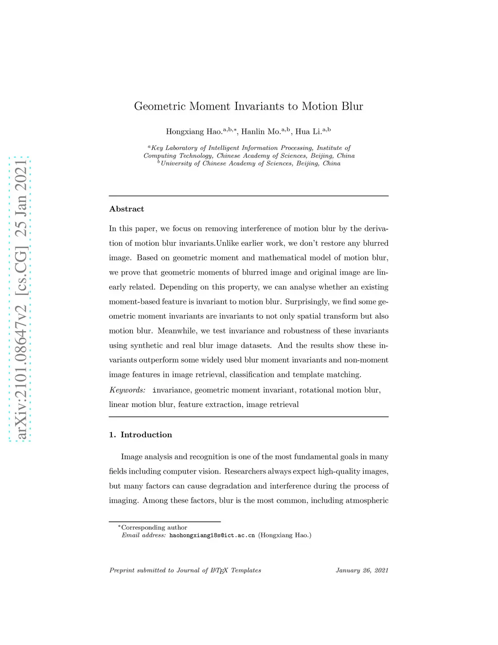 Geometric Moment Invariants to Motion Blur