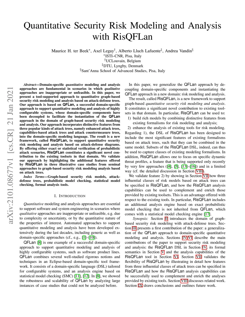 Quantitative Security Risk Modeling and Analysis with RisQFLan