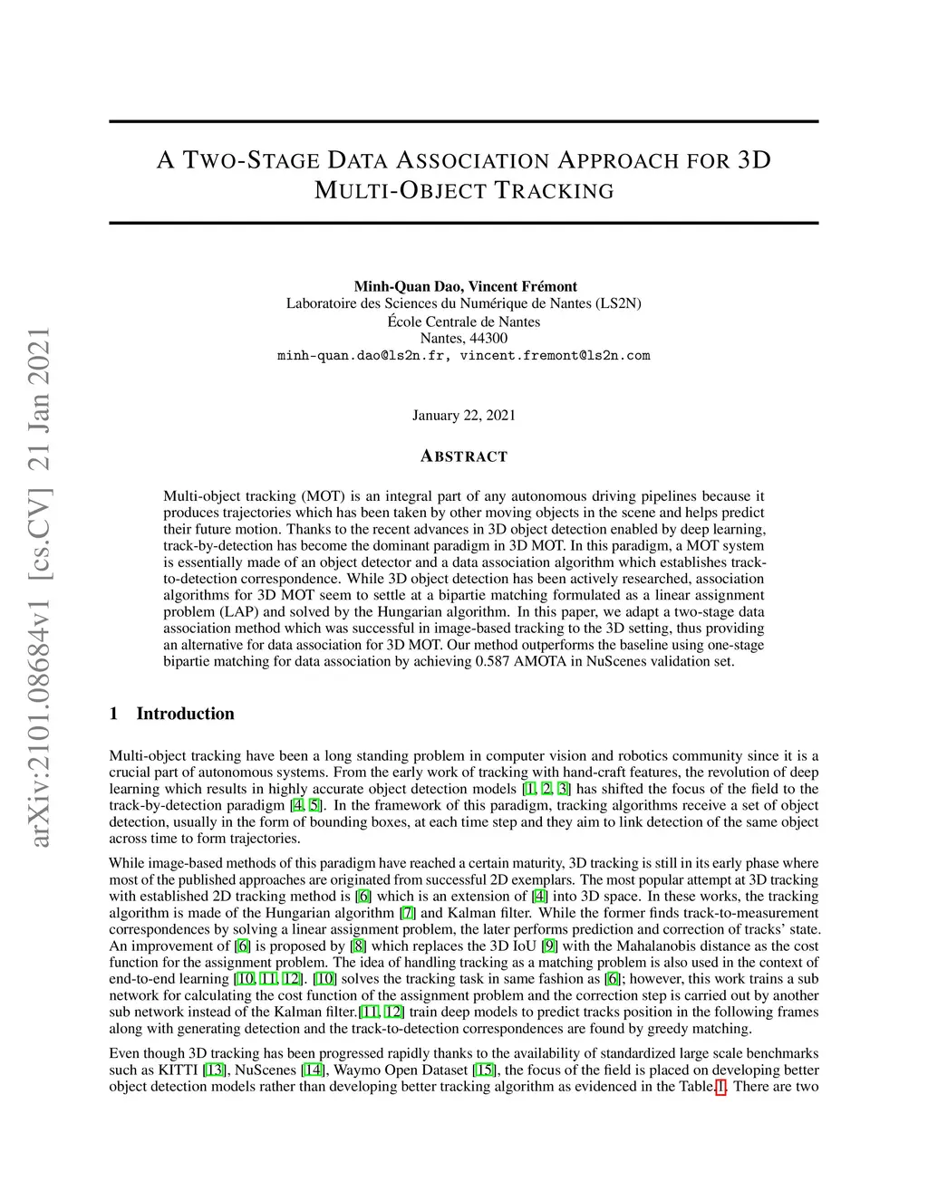 A two-stage data association approach for 3D Multi-object Tracking
