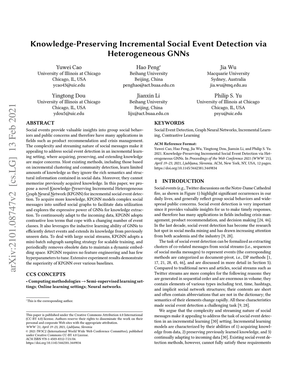 Knowledge-Preserving Incremental Social Event Detection via