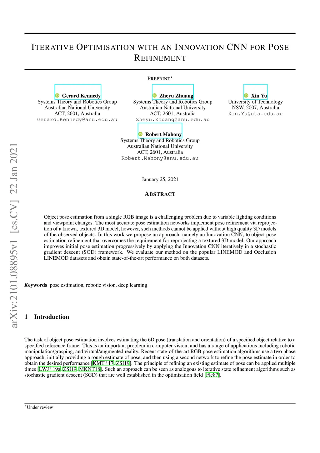 Iterative Optimisation with an Innovation CNN for Pose Refinement