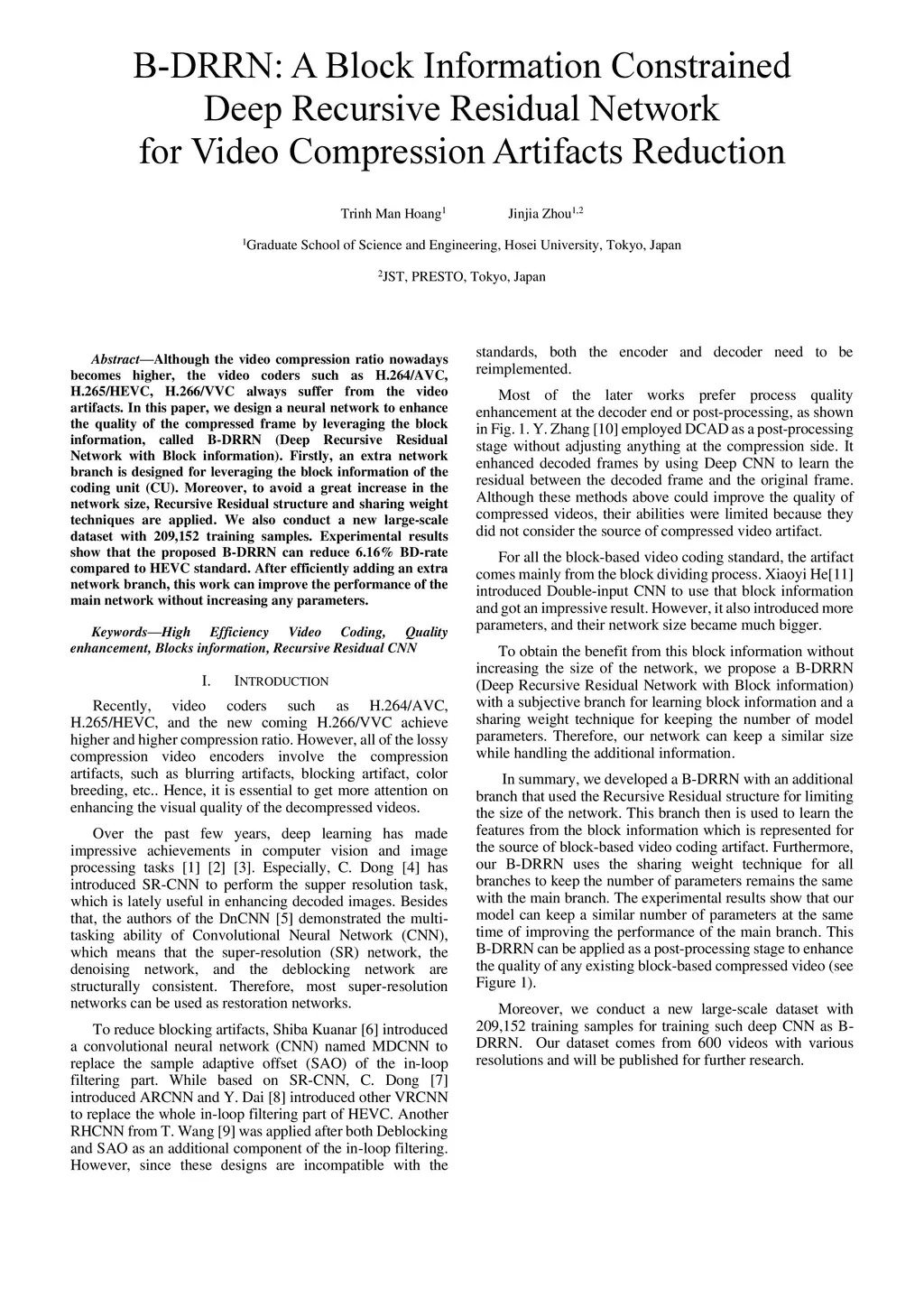 B-DRRN: A Block Information Constrained Deep Recursive Residual Network