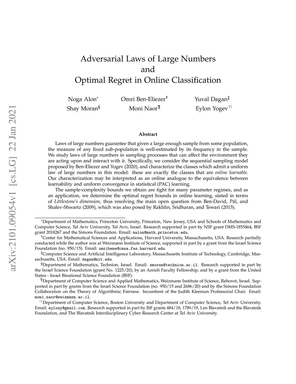 Laws of large numbers guarantee that given a large enough sample from some population, the measure of any fixed sub-population is well-estimated by its frequency in the sample. We study laws of large numbers in sampling processes that can affect the environment they are acting upon and interact with it. Specifically, we consider the sequential sampling model proposed by Ben-Eliezer and Yogev (2020), and characterize the classes which admit a uniform law of large numbers in this model: these are exactly the classes that are \emph{online learnable}. Our characterization may be interpreted as an online analogue to the equivalence between learnability and uniform convergence in statistical (PAC) learning. The sample-complexity bounds we obtain are tight for many parameter regimes, and as an application, we determine the optimal regret bounds in online learning, stated in terms of \emph{Littlestone's dimension}, thus resolving the main open question from Ben-David, P\ál, and Shalev-Shwartz (2009), which was also posed by Rakhlin, Sridharan, and Tewari (2015).