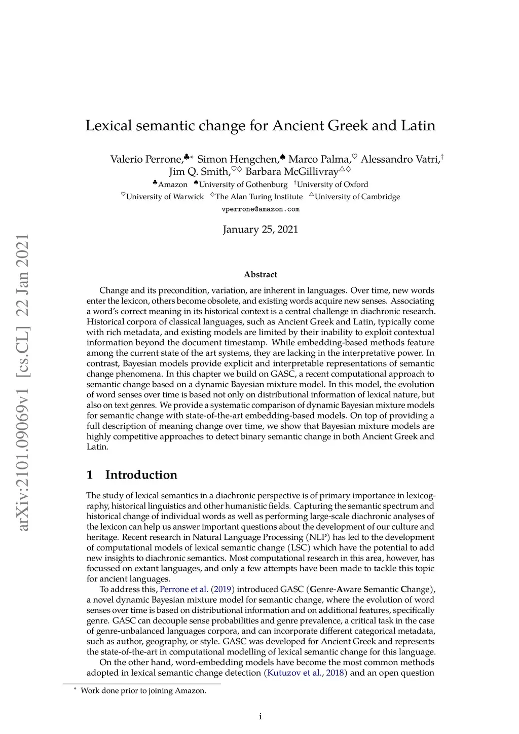 Change and its precondition, variation, are inherent in languages. Over time, new words enter the lexicon, others become obsolete, and existing words acquire new senses. Associating a word's correct meaning in its historical context is a central challenge in diachronic research. Historical corpora of classical languages, such as Ancient Greek and Latin, typically come with rich metadata, and existing models are limited by their inability to exploit contextual information beyond the document timestamp. While embedding-based methods feature among the current state of the art systems, they are lacking in the interpretative power. In contrast, Bayesian models provide explicit and interpretable representations of semantic change phenomena. In this chapter we build on GASC, a recent computational approach to semantic change based on a dynamic Bayesian mixture model. In this model, the evolution of word senses over time is based not only on distributional information of lexical nature, but also on text genres. We provide a systematic comparison of dynamic Bayesian mixture models for semantic change with state-of-the-art embedding-based models. On top of providing a full description of meaning change over time, we show that Bayesian mixture models are highly competitive approaches to detect binary semantic change in both Ancient Greek and Latin.