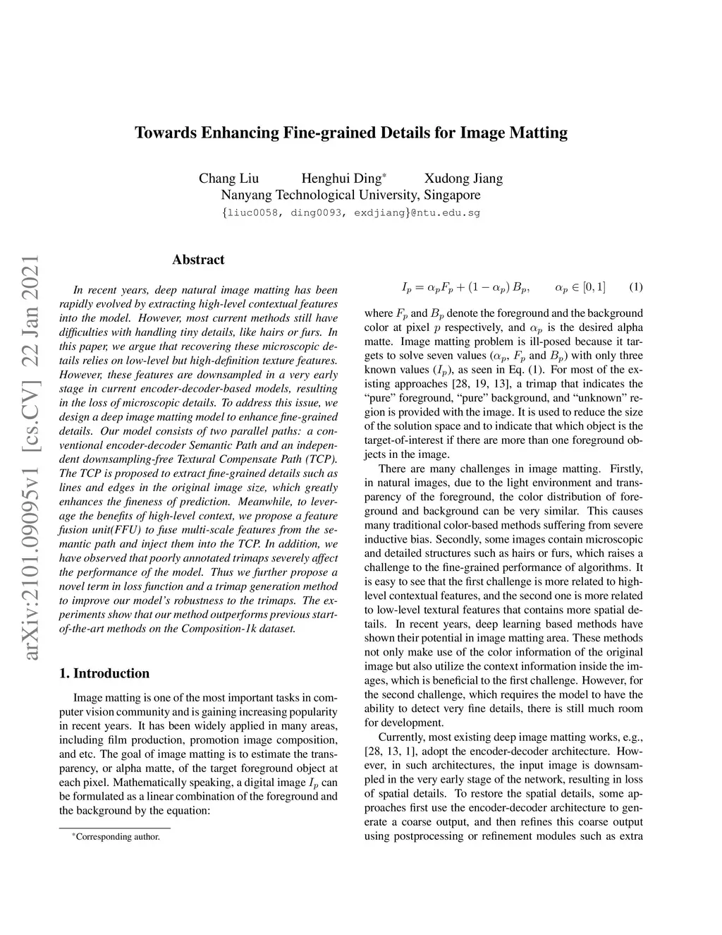 In recent years, deep natural image matting has been rapidly evolved by extracting high-level contextual features into the model. However, most current methods still have difficulties with handling tiny details, like hairs or furs. In this paper, we argue that recovering these microscopic details relies on low-level but high-definition texture features. However, {these features are downsampled in a very early stage in current encoder-decoder-based models, resulting in the loss of microscopic details}. To address this issue, we design a deep image matting model {to enhance fine-grained details. Our model consists of} two parallel paths: a conventional encoder-decoder Semantic Path and an independent downsampling-free Textural Compensate Path (TCP). The TCP is proposed to extract fine-grained details such as lines and edges in the original image size, which greatly enhances the fineness of prediction. Meanwhile, to leverage the benefits of high-level context, we propose a feature fusion unit(FFU) to fuse multi-scale features from the semantic path and inject them into the TCP. In addition, we have observed that poorly annotated trimaps severely affect the performance of the model. Thus we further propose a novel term in loss function and a trimap generation method to improve our model's robustness to the trimaps. The experiments show that our method outperforms previous start-of-the-art methods on the Composition-1k dataset.