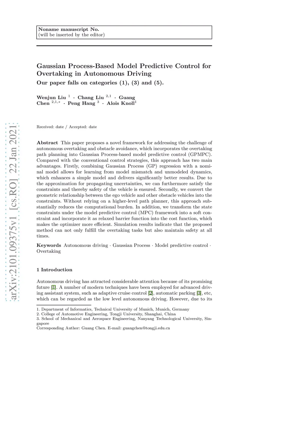 Gaussian Process-Based Model Predictive Control for Overtaking