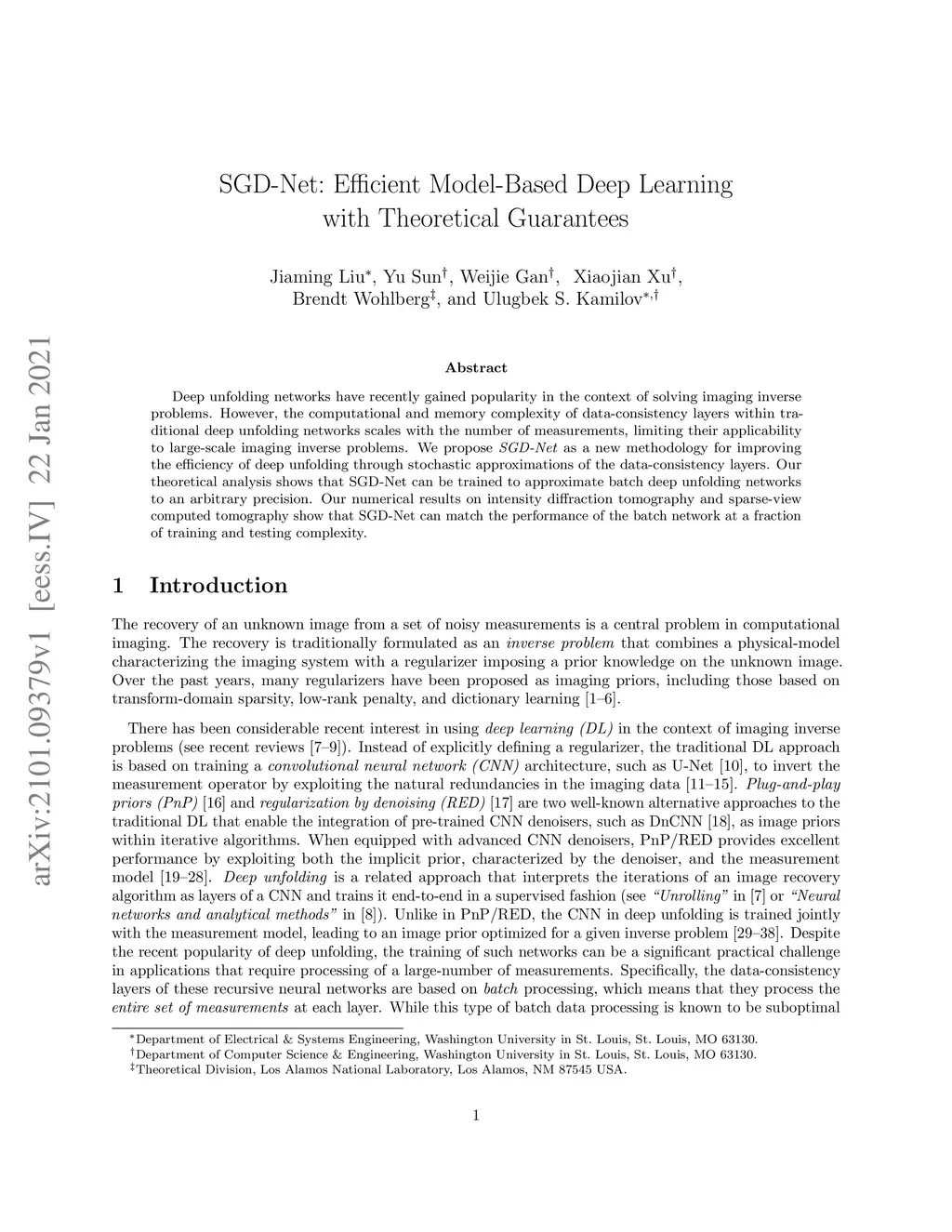 SGD-Net: Efficient Model-Based Deep Learning with Theoretical Guarantees