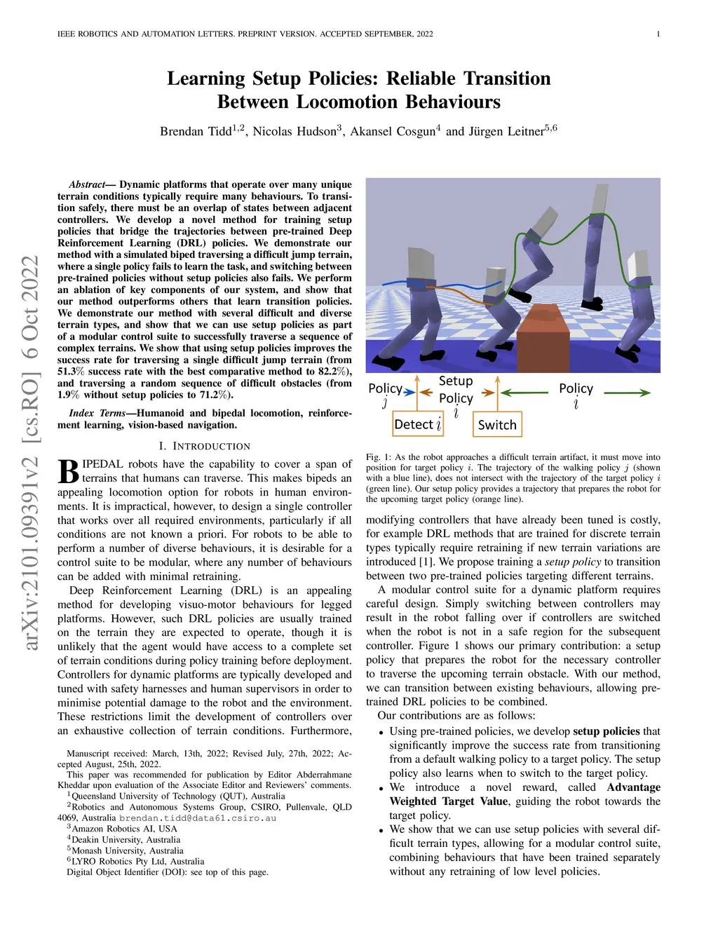 Learning Setup Policies: Reliable Transition Between Locomotion