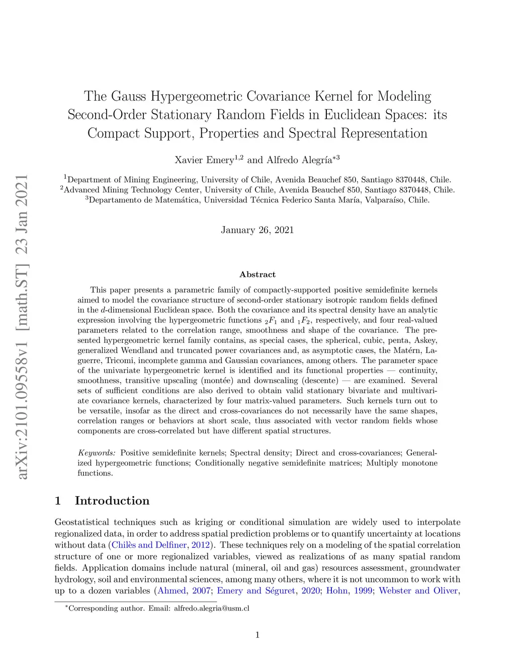 The Gauss Hypergeometric Covariance Kernel for Modeling Second-Order