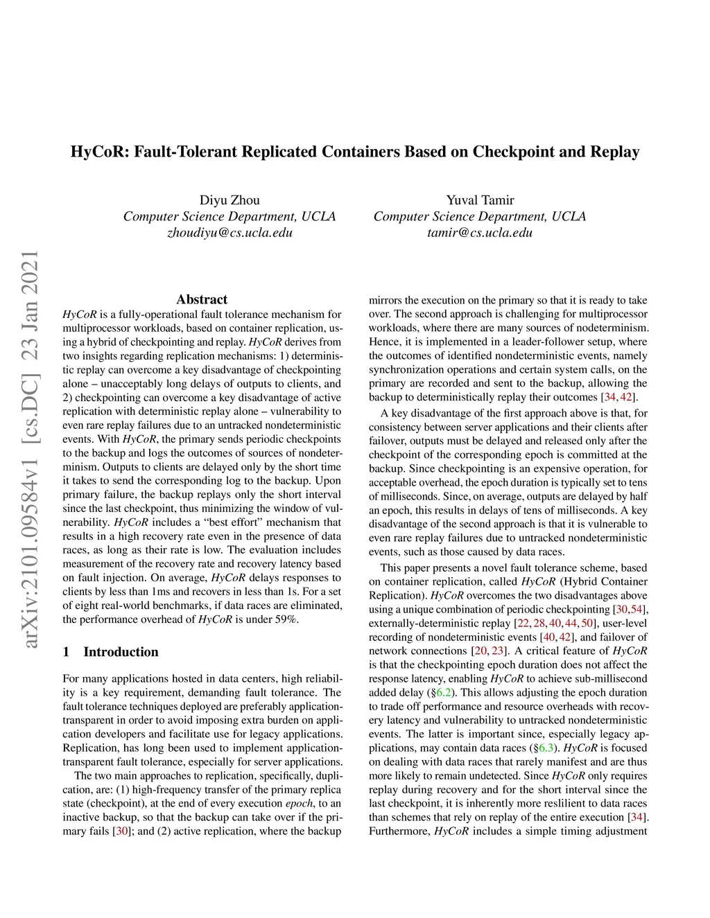 HyCoR: Fault-Tolerant Replicated Containers Based on Checkpoint and