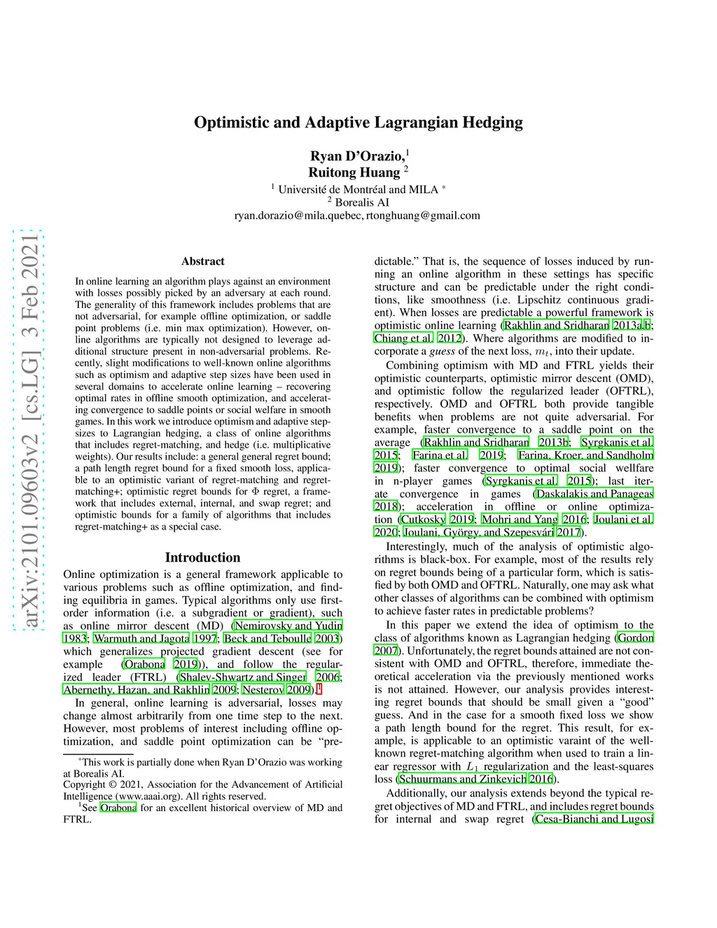 Optimistic and Adaptive Lagrangian Hedging