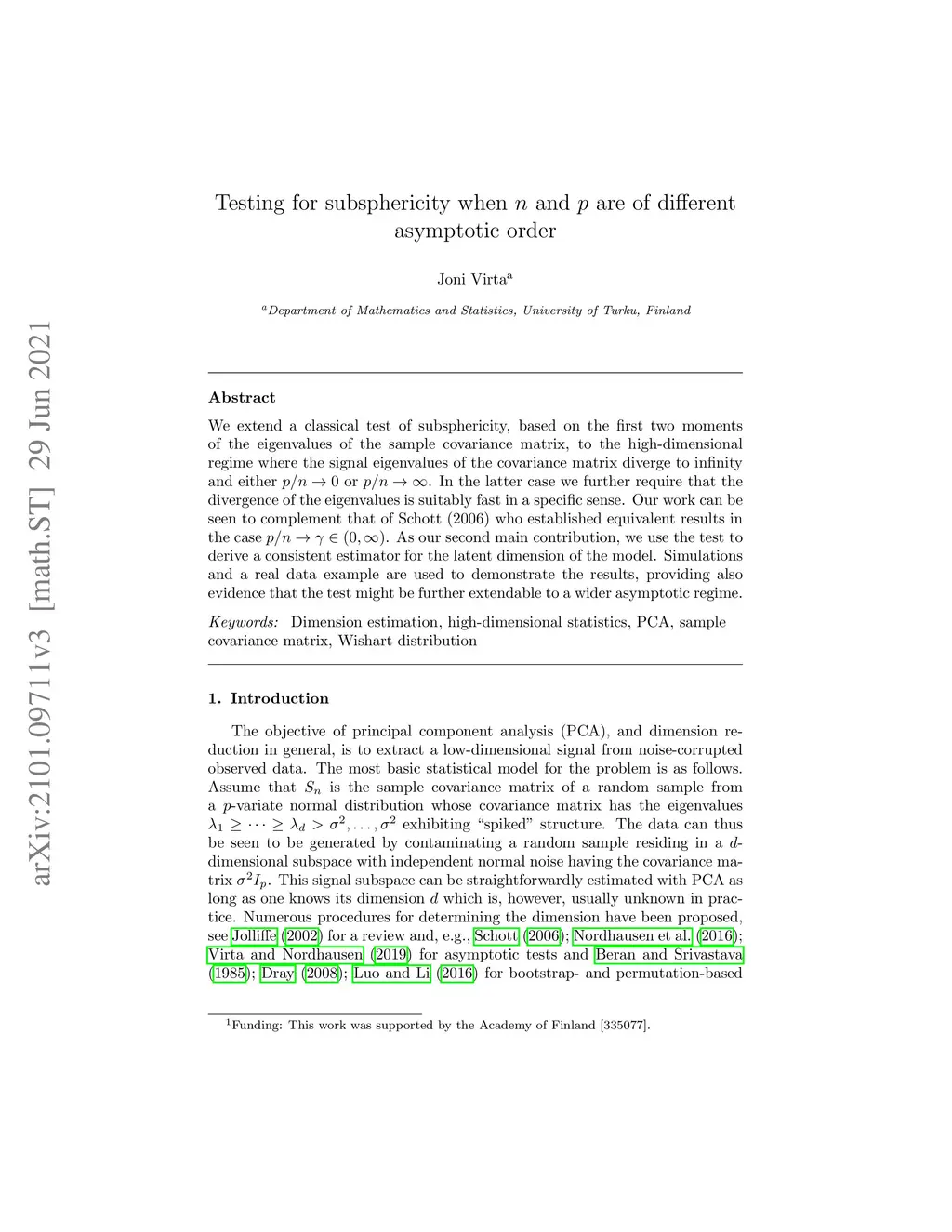 Testing for subsphericity when and are of different asymptotic