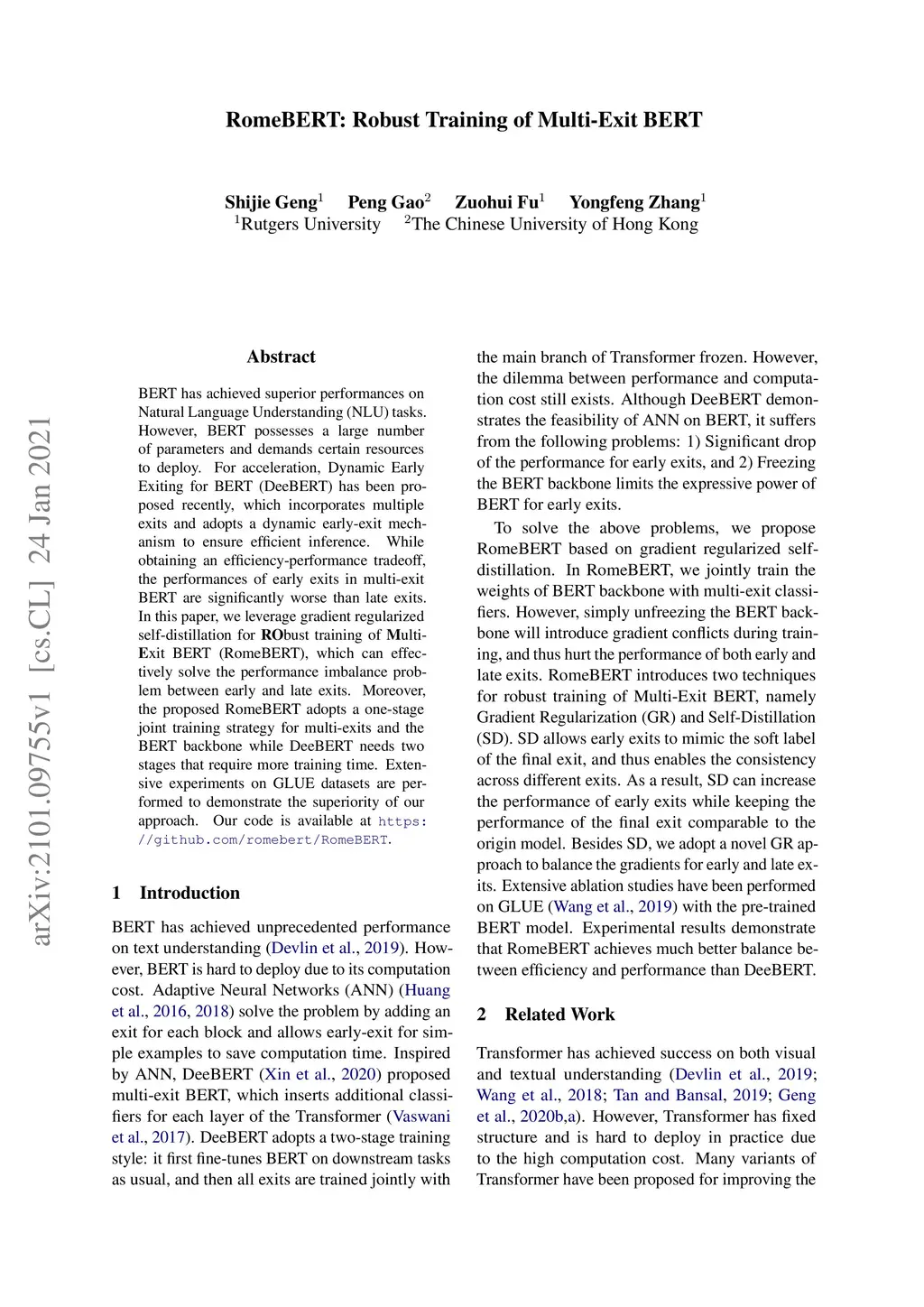 RomeBERT: Robust Training of Multi-Exit BERT