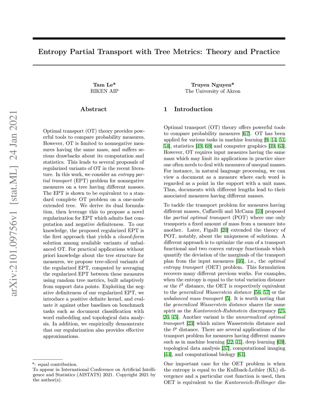 Optimal transport (OT) theory provides powerful tools to compare probability measures. However, OT is limited to nonnegative measures having the same mass, and suffers serious drawbacks about its computation and statistics. This leads to several proposals of regularized variants of OT in the recent literature. In this work, we consider an \textit{entropy partial transport} (EPT) problem for nonnegative measures on a tree having different masses. The EPT is shown to be equivalent to a standard complete OT problem on a one-node extended tree. We derive its dual formulation, then leverage this to propose a novel regularization for EPT which admits fast computation and negative definiteness. To our knowledge, the proposed regularized EPT is the first approach that yields a \textit{closed-form} solution among available variants of unbalanced OT. For practical applications without priori knowledge about the tree structure for measures, we propose tree-sliced variants of the regularized EPT, computed by averaging the regularized EPT between these measures using random tree metrics, built adaptively from support data points. Exploiting the negative definiteness of our regularized EPT, we introduce a positive definite kernel, and evaluate it against other baselines on benchmark tasks such as document classification with word embedding and topological data analysis. In addition, we empirically demonstrate that our regularization also provides effective approximations.