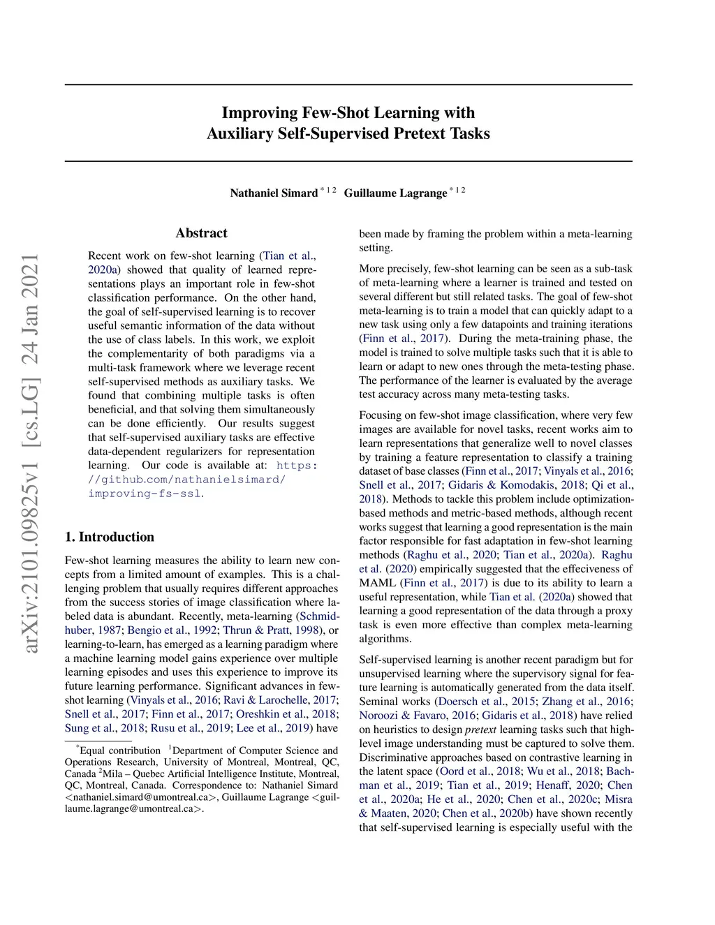 Improving Few-Shot Learning with Auxiliary Self-Supervised Pretext Tasks