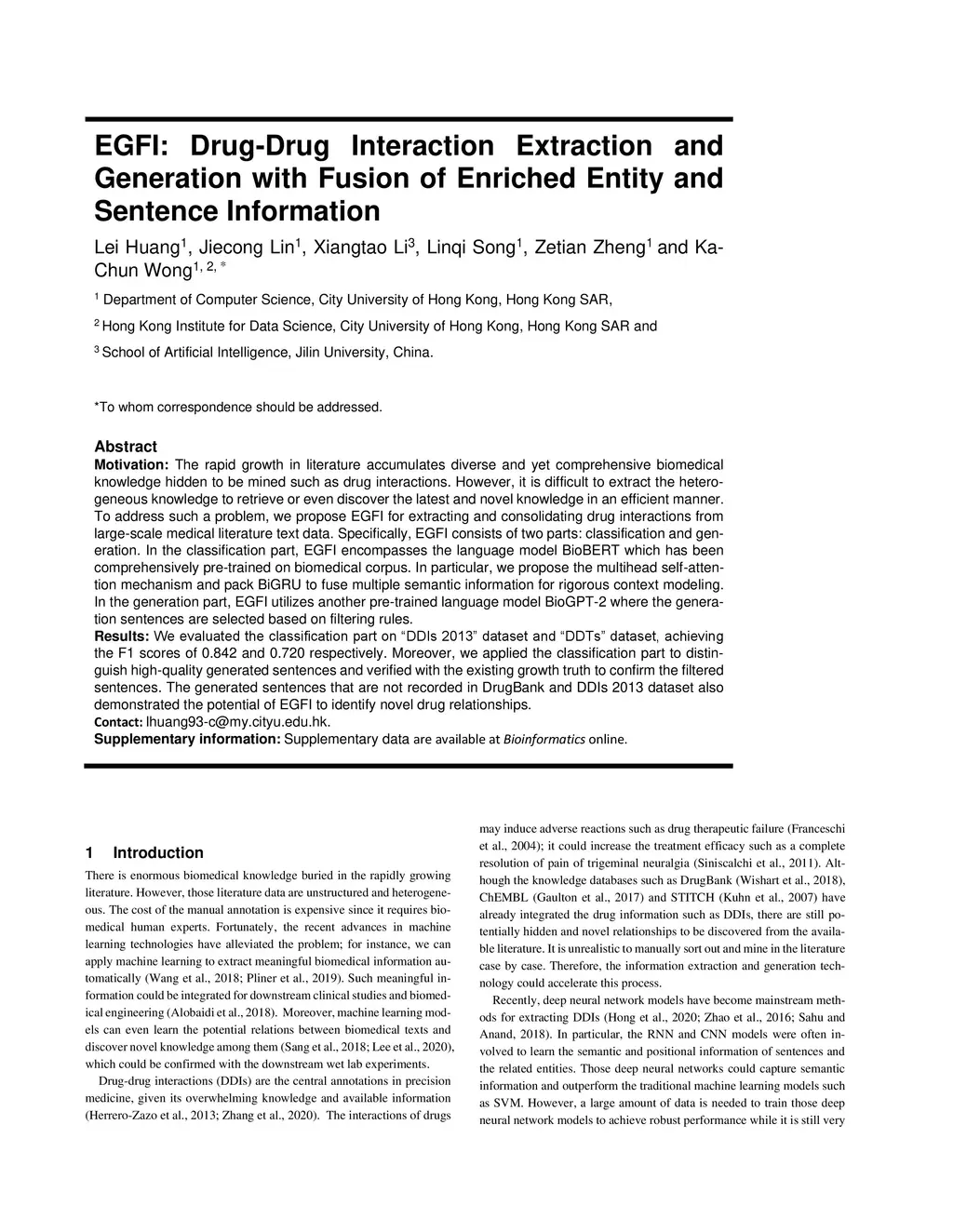 EGFI: Drug-Drug Interaction Extraction and Generation with Fusion of