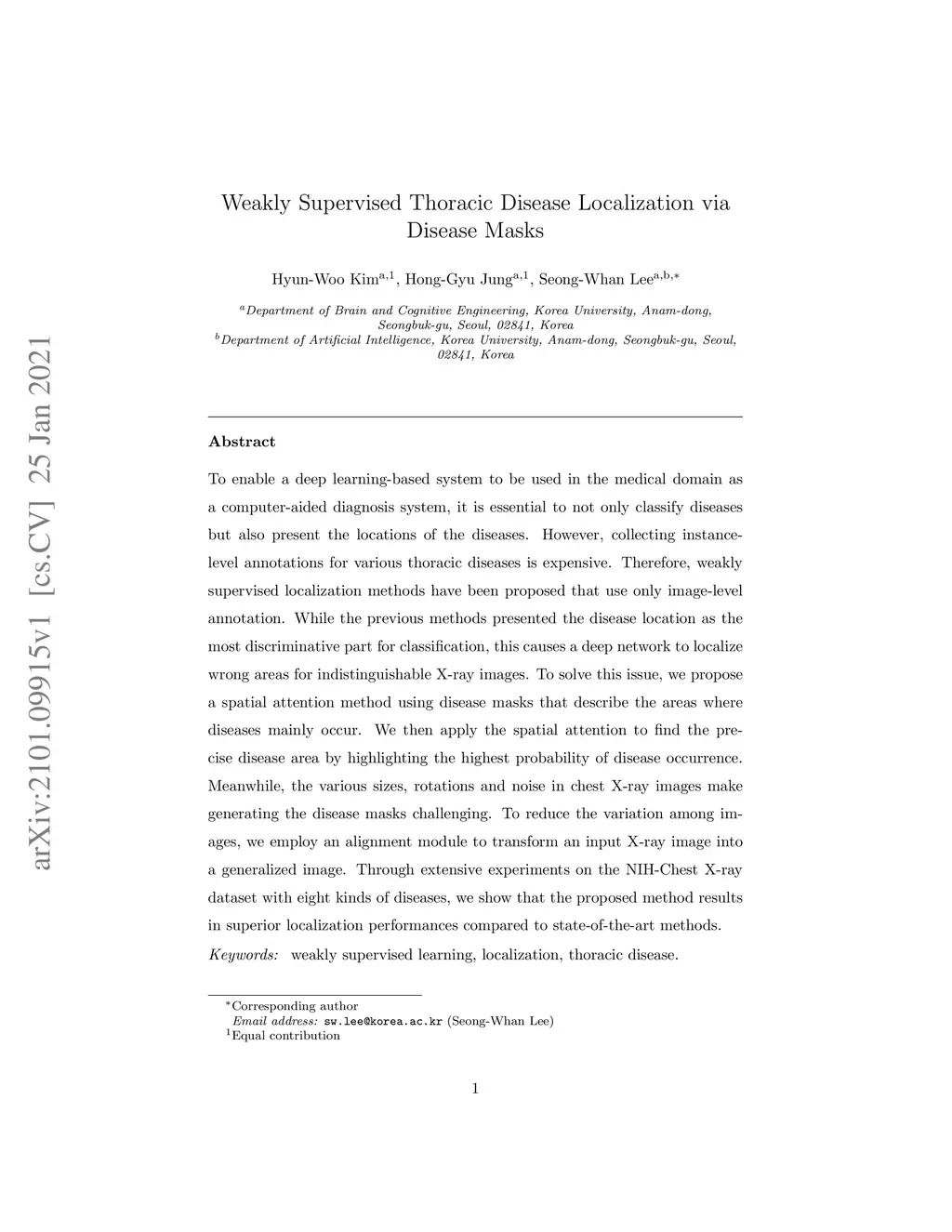 Weakly Supervised Thoracic Disease Localization via Disease Masks