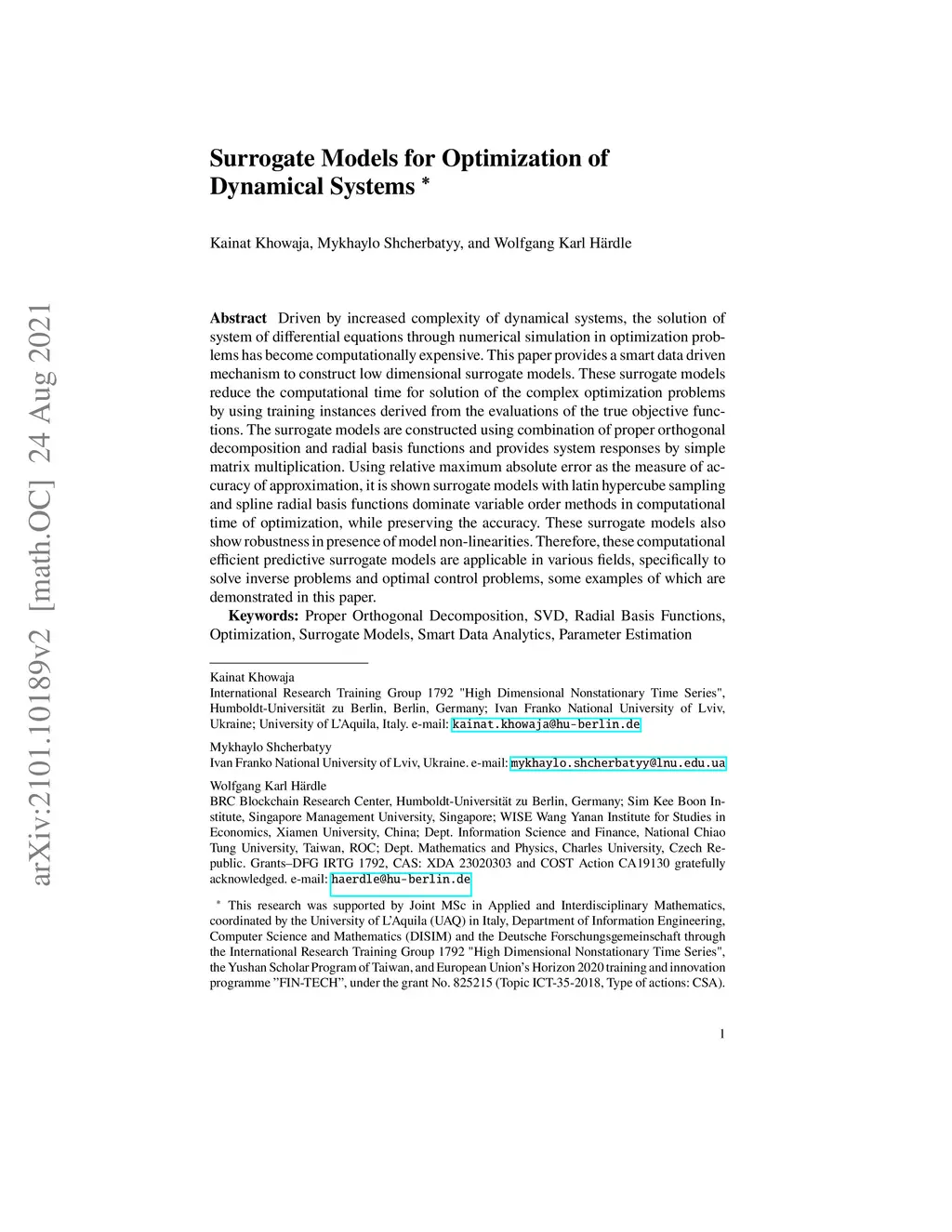 Surrogate Models for Optimization of Dynamical Systems