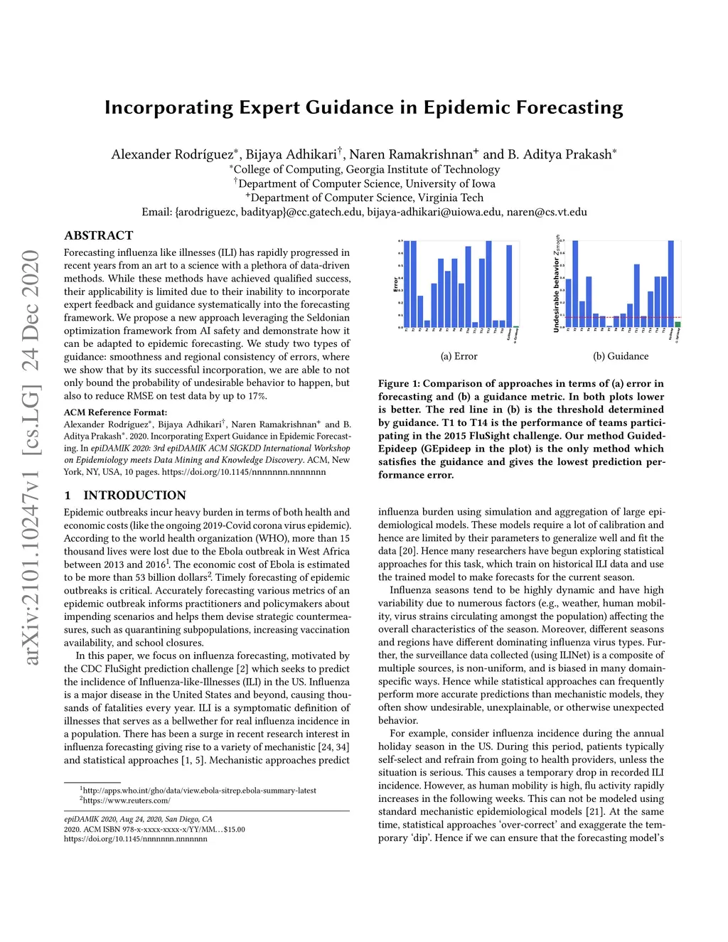 Forecasting influenza like illnesses (ILI) has rapidly progressed in recent years from an art to a science with a plethora of data-driven methods. While these methods have achieved qualified success, their applicability is limited due to their inability to incorporate expert feedback and guidance systematically into the forecasting framework. We propose a new approach leveraging the Seldonian optimization framework from AI safety and demonstrate how it can be adapted to epidemic forecasting. We study two types of guidance: smoothness and regional consistency of errors, where we show that by its successful incorporation, we are able to not only bound the probability of undesirable behavior to happen, but also to reduce RMSE on test data by up to 17%.