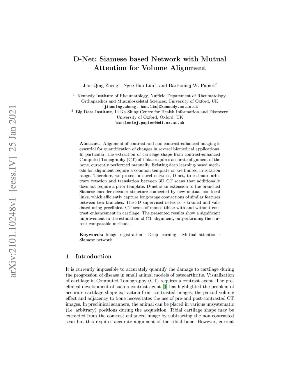 D-Net: Siamese based Network with Mutual Attention for Volume Alignment