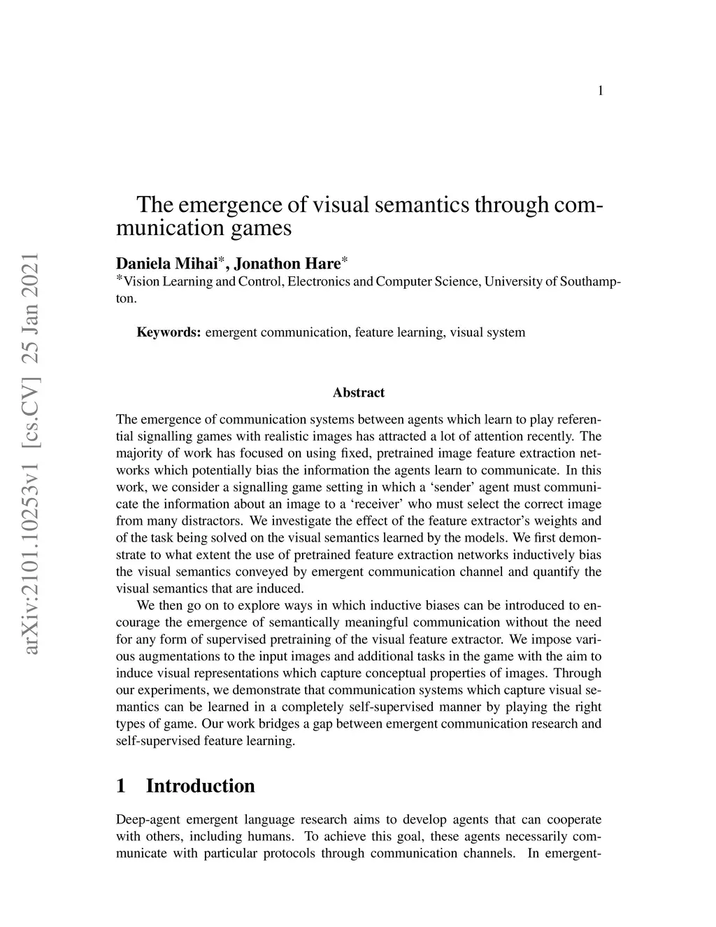 The emergence of communication systems between agents which learn to play referential signalling games with realistic images has attracted a lot of attention recently. The majority of work has focused on using fixed, pretrained image feature extraction networks which potentially bias the information the agents learn to communicate. In this work, we consider a signalling game setting in which a `sender' agent must communicate the information about an image to a `receiver' who must select the correct image from many distractors. We investigate the effect of the feature extractor's weights and of the task being solved on the visual semantics learned by the models. We first demonstrate to what extent the use of pretrained feature extraction networks inductively bias the visual semantics conveyed by emergent communication channel and quantify the visual semantics that are induced. We then go on to explore ways in which inductive biases can be introduced to encourage the emergence of semantically meaningful communication without the need for any form of supervised pretraining of the visual feature extractor. We impose various augmentations to the input images and additional tasks in the game with the aim to induce visual representations which capture conceptual properties of images. Through our experiments, we demonstrate that communication systems which capture visual semantics can be learned in a completely self-supervised manner by playing the right types of game. Our work bridges a gap between emergent communication research and self-supervised feature learning.