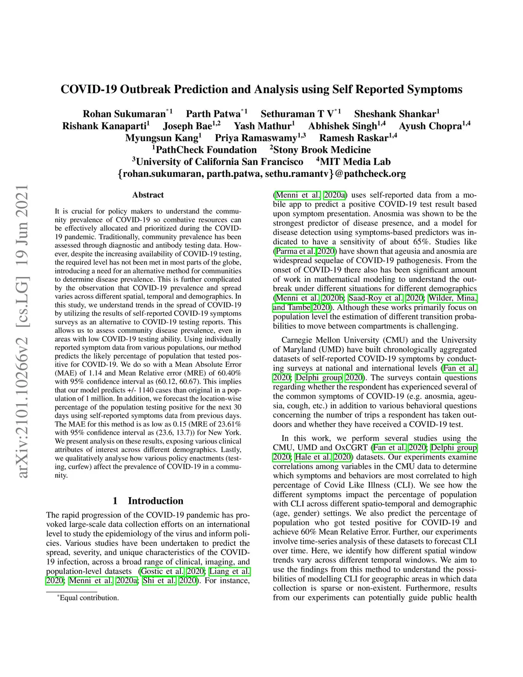 It is crucial for policymakers to understand the community prevalence of COVID-19 so combative resources can be effectively allocated and prioritized during the COVID-19 pandemic. Traditionally, community prevalence has been assessed through diagnostic and antibody testing data. However, despite the increasing availability of COVID-19 testing, the required level has not been met in most parts of the globe, introducing a need for an alternative method for communities to determine disease prevalence. This is further complicated by the observation that COVID-19 prevalence and spread varies across different spatial, temporal, and demographics. In this study, we understand trends in the spread of COVID-19 by utilizing the results of self-reported COVID-19 symptoms surveys as an alternative to COVID-19 testing reports. This allows us to assess community disease prevalence, even in areas with low COVID-19 testing ability. Using individually reported symptom data from various populations, our method predicts the likely percentage of the population that tested positive for COVID-19. We do so with a Mean Absolute Error (MAE) of 1.14 and Mean Relative Error (MRE) of 60.40\% with 95\% confidence interval as (60.12, 60.67). This implies that our model predicts +/- 1140 cases than the original in a population of 1 million. In addition, we forecast the location-wise percentage of the population testing positive for the next 30 days using self-reported symptoms data from previous days. The MAE for this method is as low as 0.15 (MRE of 23.61\% with 95\% confidence interval as (23.6, 13.7)) for New York. We present an analysis of these results, exposing various clinical attributes of interest across different demographics. Lastly, we qualitatively analyze how various policy enactments (testing, curfew) affect the prevalence of COVID-19 in a community.