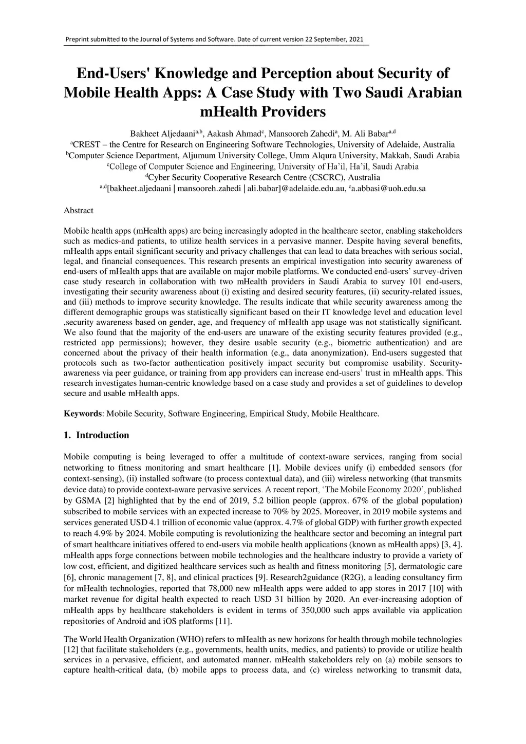 Apps: A Case Study with Two Saudi Arabian mHealth Providers