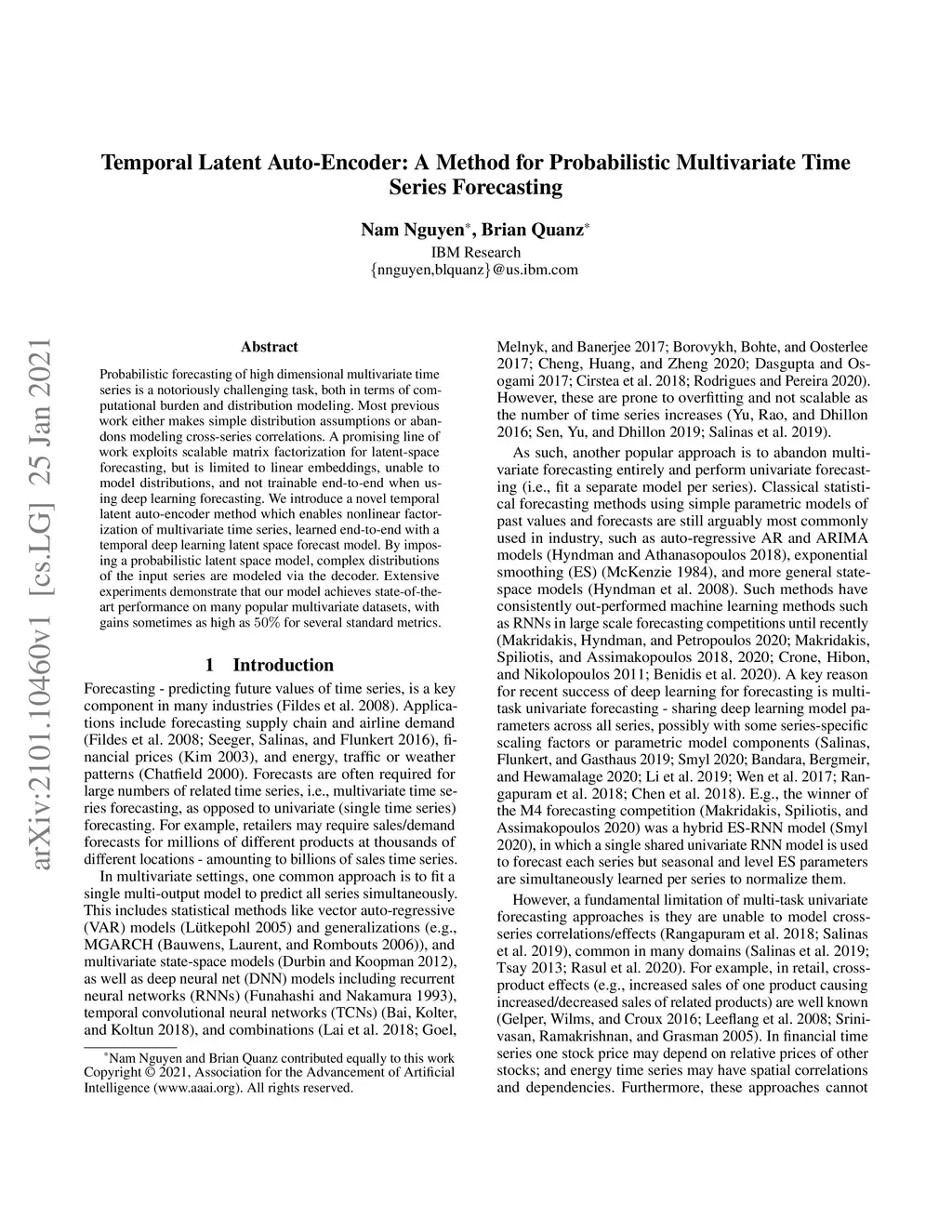 Temporal Latent Auto-Encoder: A Method for Probabilistic Multivariate