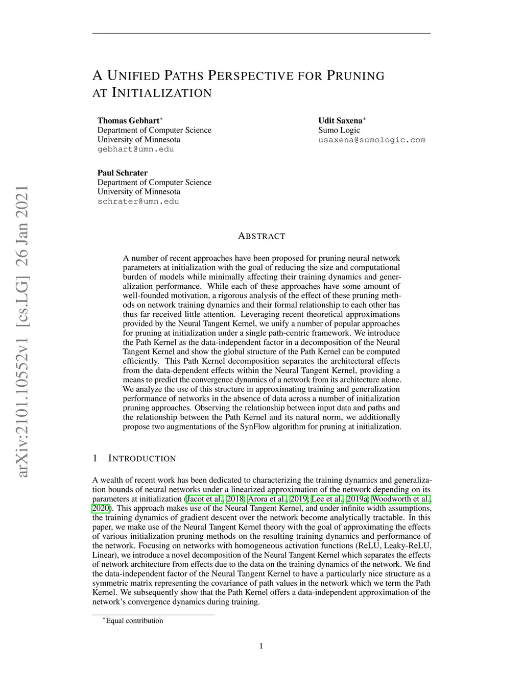 A number of recent approaches have been proposed for pruning neural network parameters at initialization with the goal of reducing the size and computational burden of models while minimally affecting their training dynamics and generalization performance. While each of these approaches have some amount of well-founded motivation, a rigorous analysis of the effect of these pruning methods on network training dynamics and their formal relationship to each other has thus far received little attention. Leveraging recent theoretical approximations provided by the Neural Tangent Kernel, we unify a number of popular approaches for pruning at initialization under a single path-centric framework. We introduce the Path Kernel as the data-independent factor in a decomposition of the Neural Tangent Kernel and show the global structure of the Path Kernel can be computed efficiently. This Path Kernel decomposition separates the architectural effects from the data-dependent effects within the Neural Tangent Kernel, providing a means to predict the convergence dynamics of a network from its architecture alone. We analyze the use of this structure in approximating training and generalization performance of networks in the absence of data across a number of initialization pruning approaches. Observing the relationship between input data and paths and the relationship between the Path Kernel and its natural norm, we additionally propose two augmentations of the SynFlow algorithm for pruning at initialization.