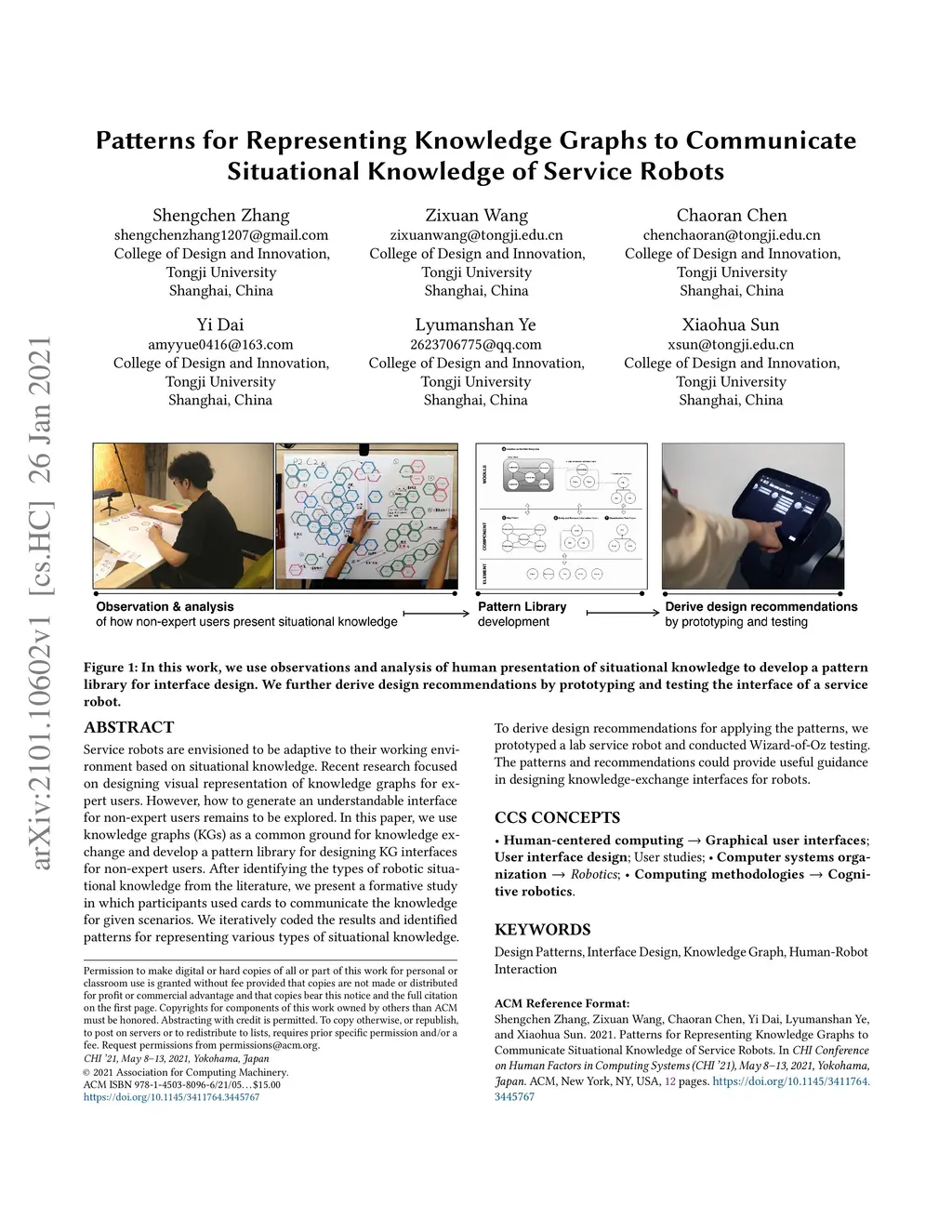 Service robots are envisioned to be adaptive to their working environment based on situational knowledge. Recent research focused on designing visual representation of knowledge graphs for expert users. However, how to generate an understandable interface for non-expert users remains to be explored. In this paper, we use knowledge graphs (KGs) as a common ground for knowledge exchange and develop a pattern library for designing KG interfaces for non-expert users. After identifying the types of robotic situational knowledge from the literature, we present a formative study in which participants used cards to communicate the knowledge for given scenarios. We iteratively coded the results and identified patterns for representing various types of situational knowledge. To derive design recommendations for applying the patterns, we prototyped a lab service robot and conducted Wizard-of-Oz testing. The patterns and recommendations could provide useful guidance in designing knowledge-exchange interfaces for robots.