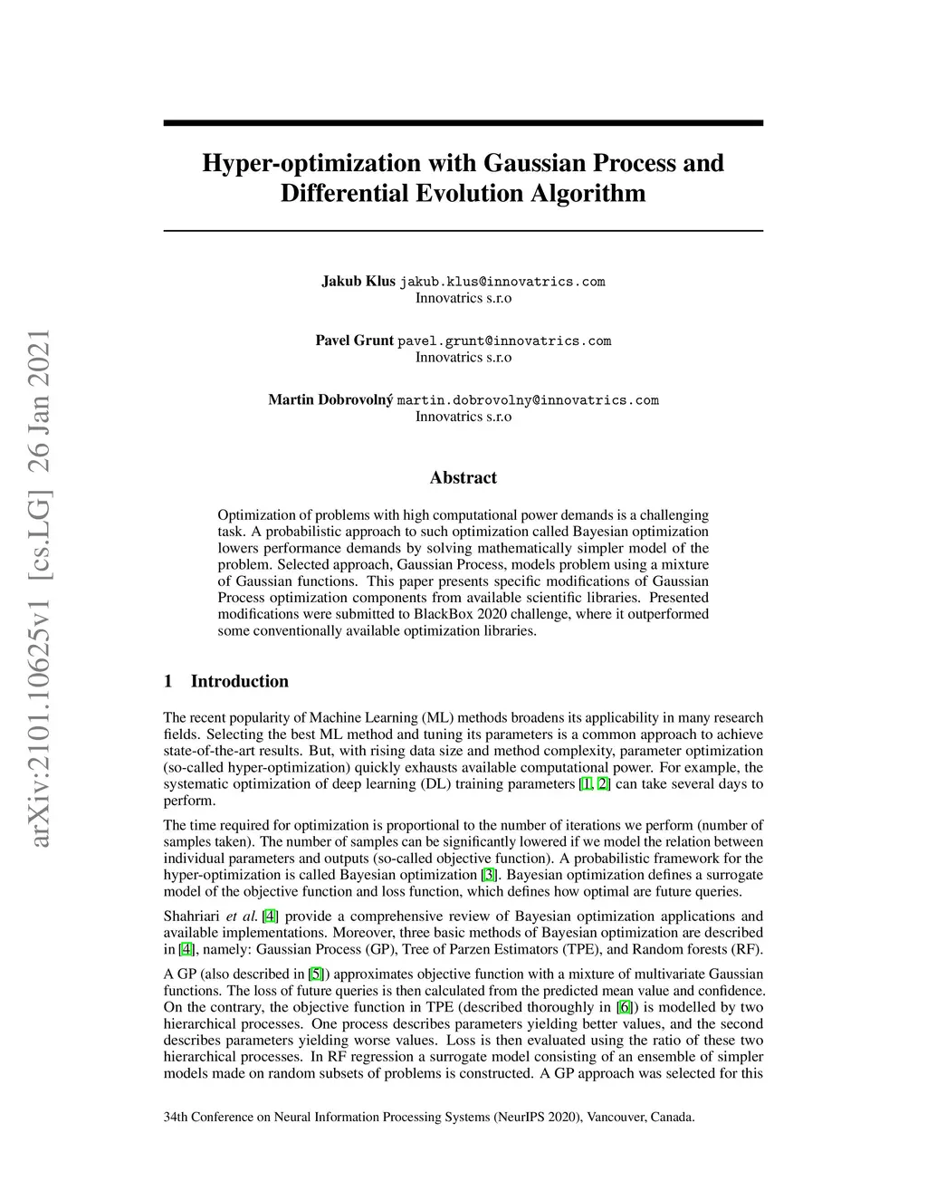 Hyper-optimization with Gaussian Process and Differential Evolution