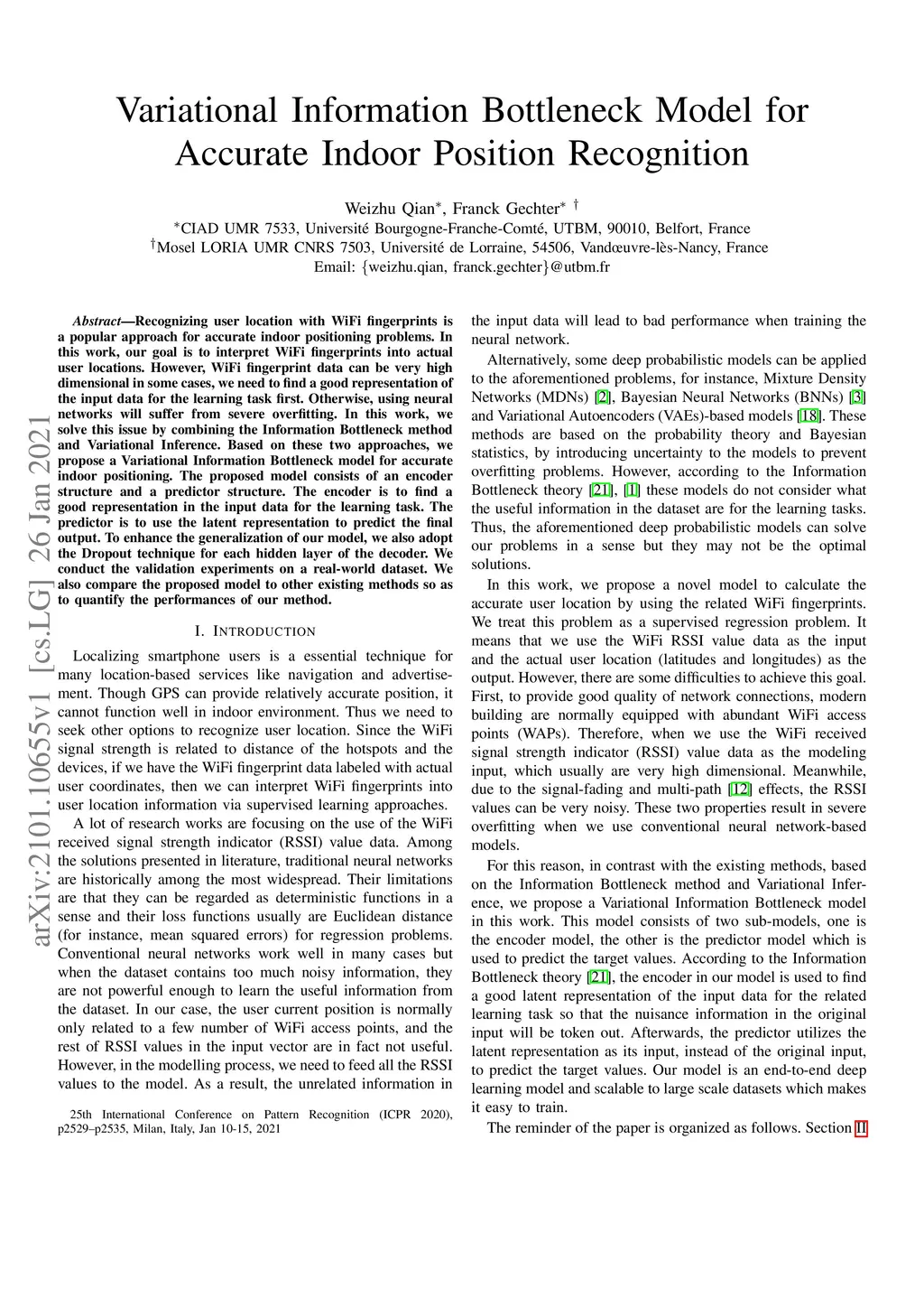 Variational Information Bottleneck Model for Accurate Indoor Position