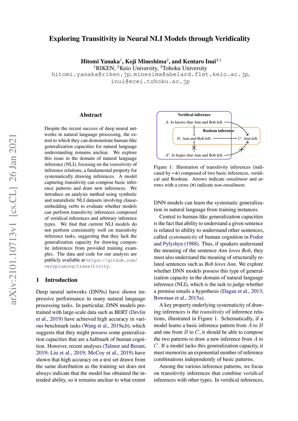 Exploring Transitivity in Neural NLI Models through Veridicality