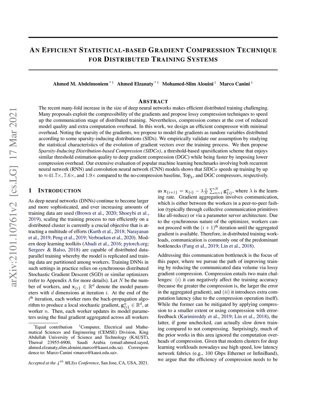 An Efficient Statistical-based Gradient Compression Technique for