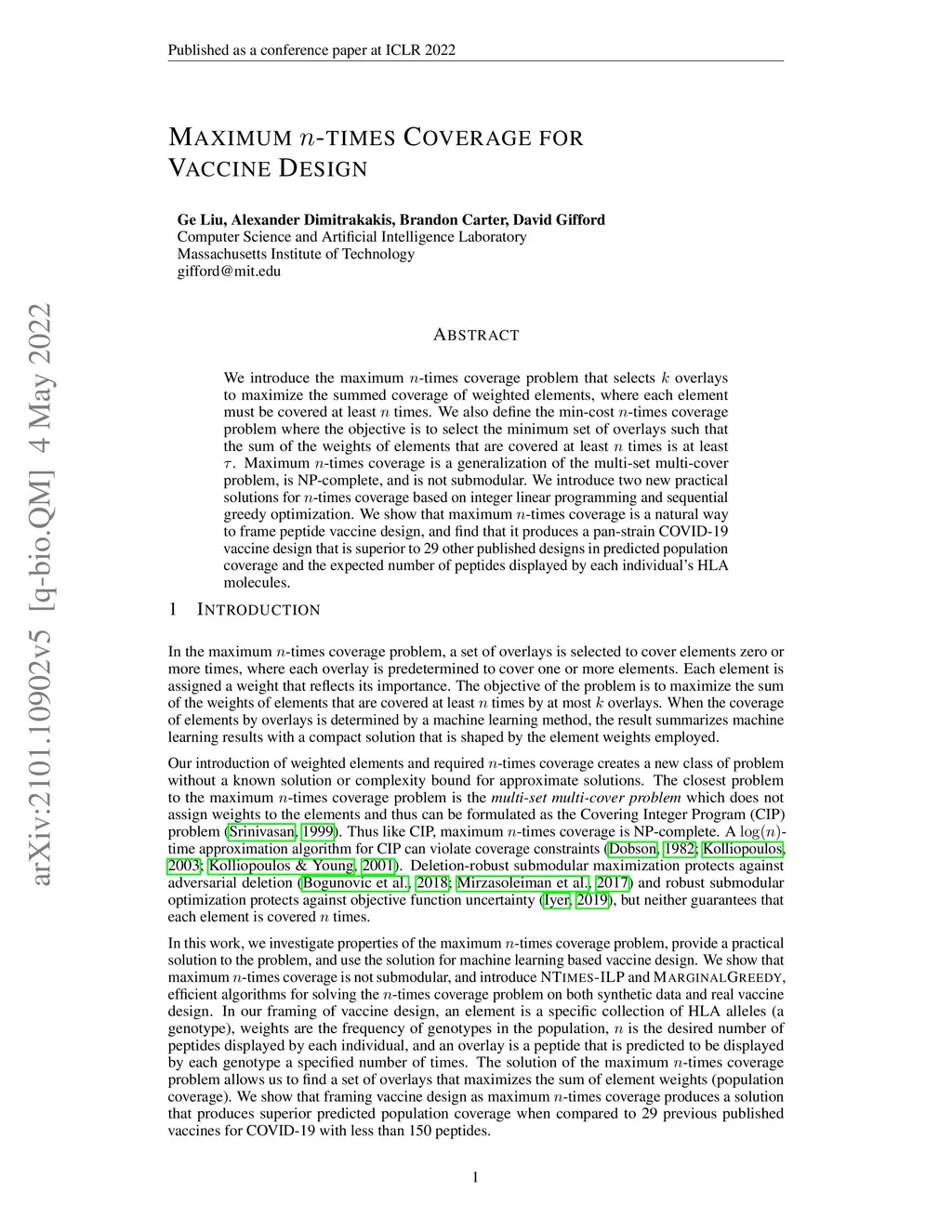 Maximum n-times Coverage for Vaccine Design