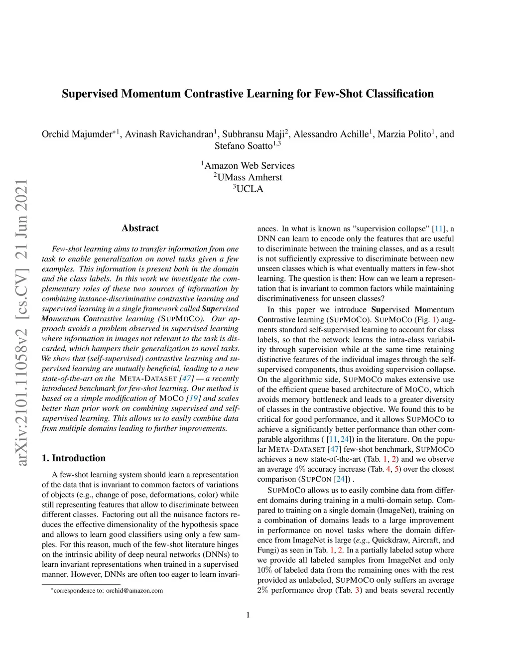 Supervised Momentum Contrastive Learning for Few-Shot Classification